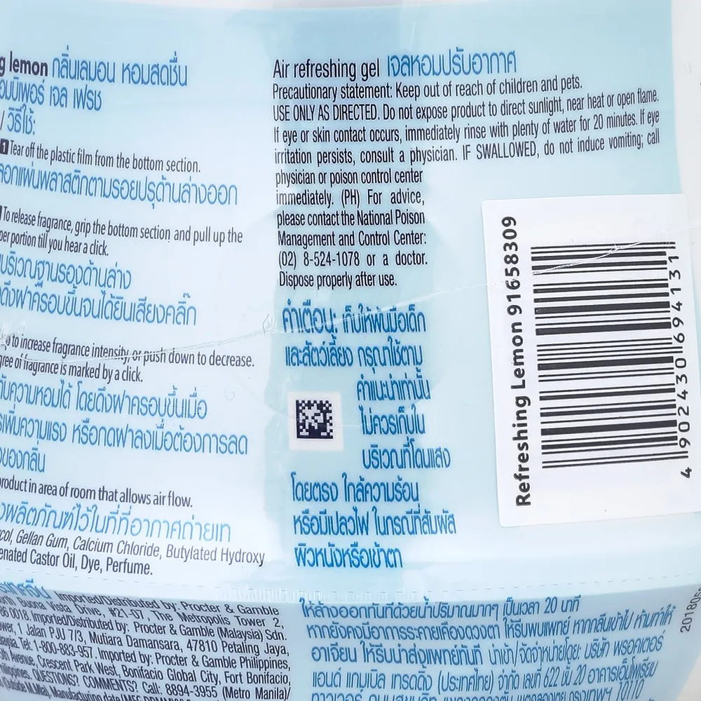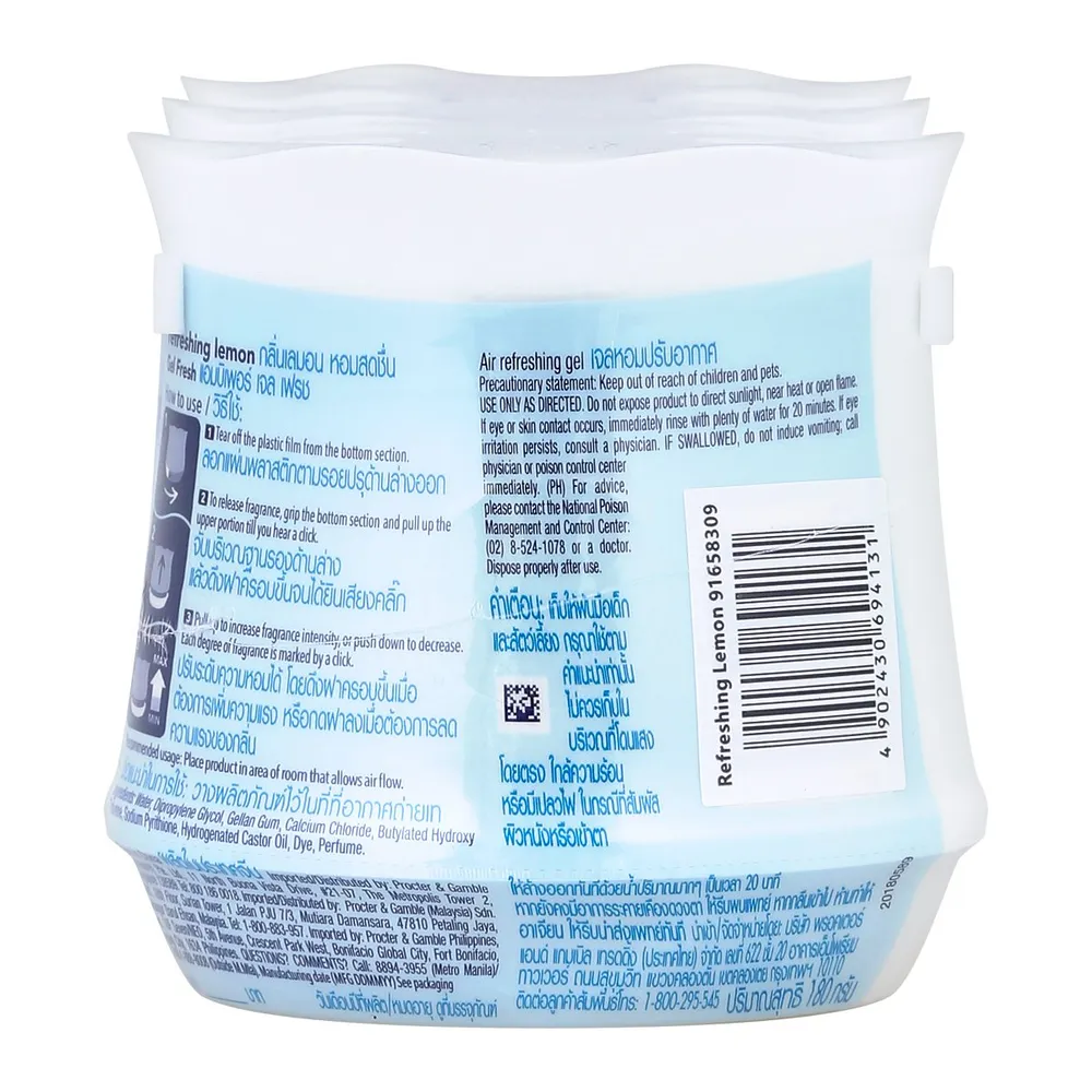- แอมบิเพอร์ รูมเฟรช เจลหอมปรับอากาศ กลิ่นรีเฟรชชิ่ง เลมอน<br />