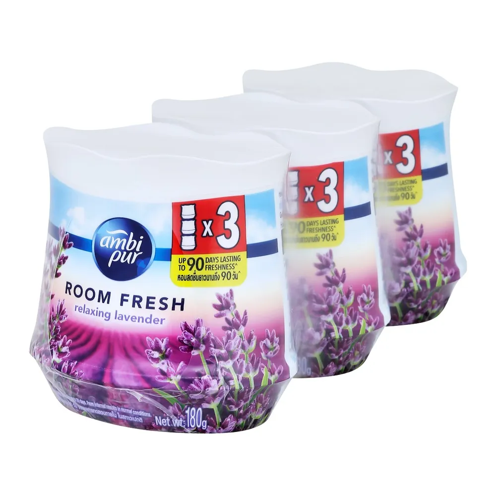 แอมบิเพอร์ รูมเฟรช เจลหอมปรับอากาศ กลิ่นรีแลกซิ่ง ลาเวนเดอร์ 180 ก. แพ็ค 2+1 ชิ้น