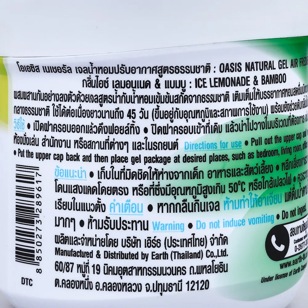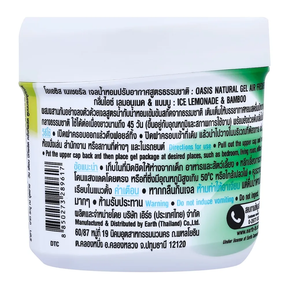 โอเอซิส เนเชอรัล เจลน้ำหอมปรับอากาศ กลิ่นไอซ์ เลมอนเนดและแบมบู 180 ก.