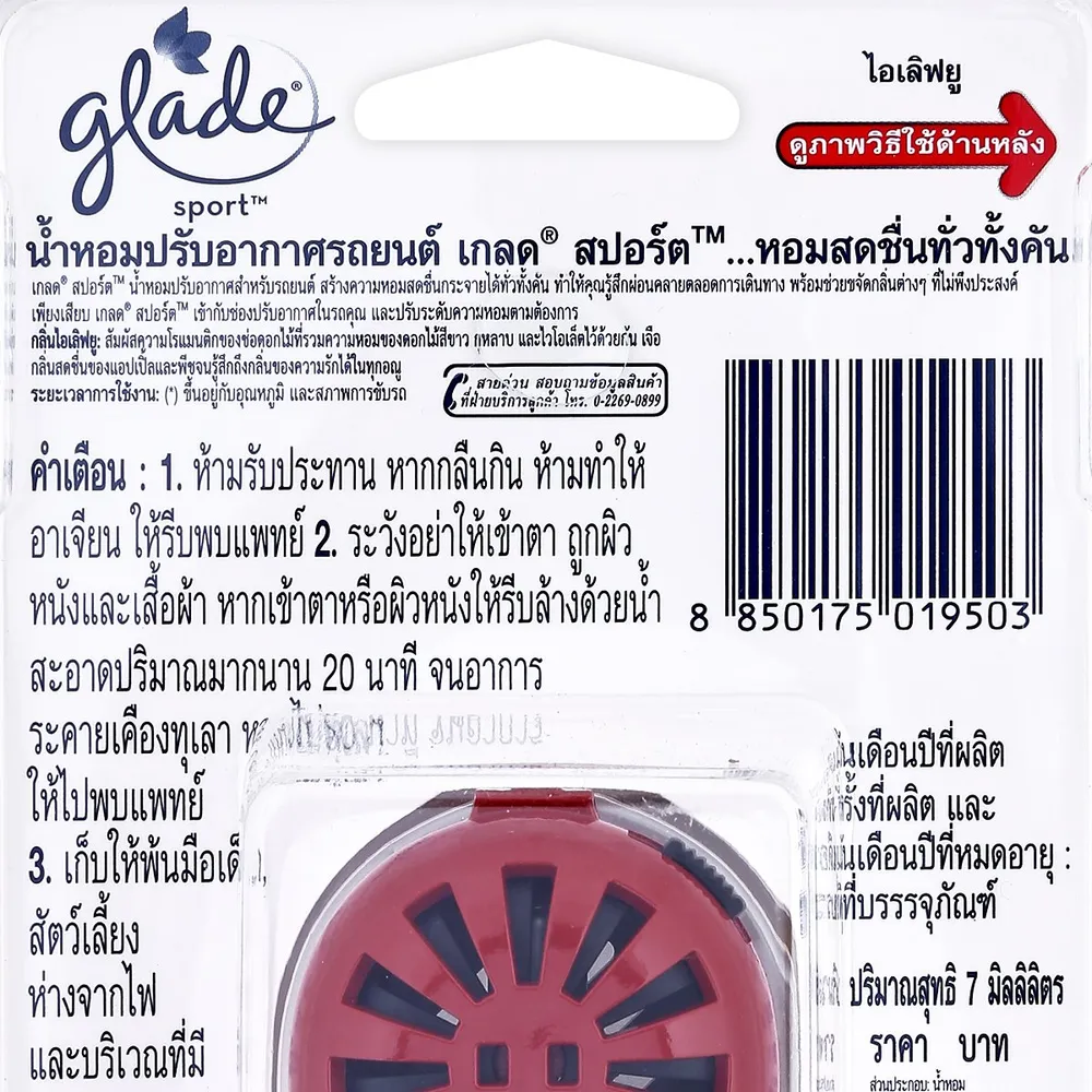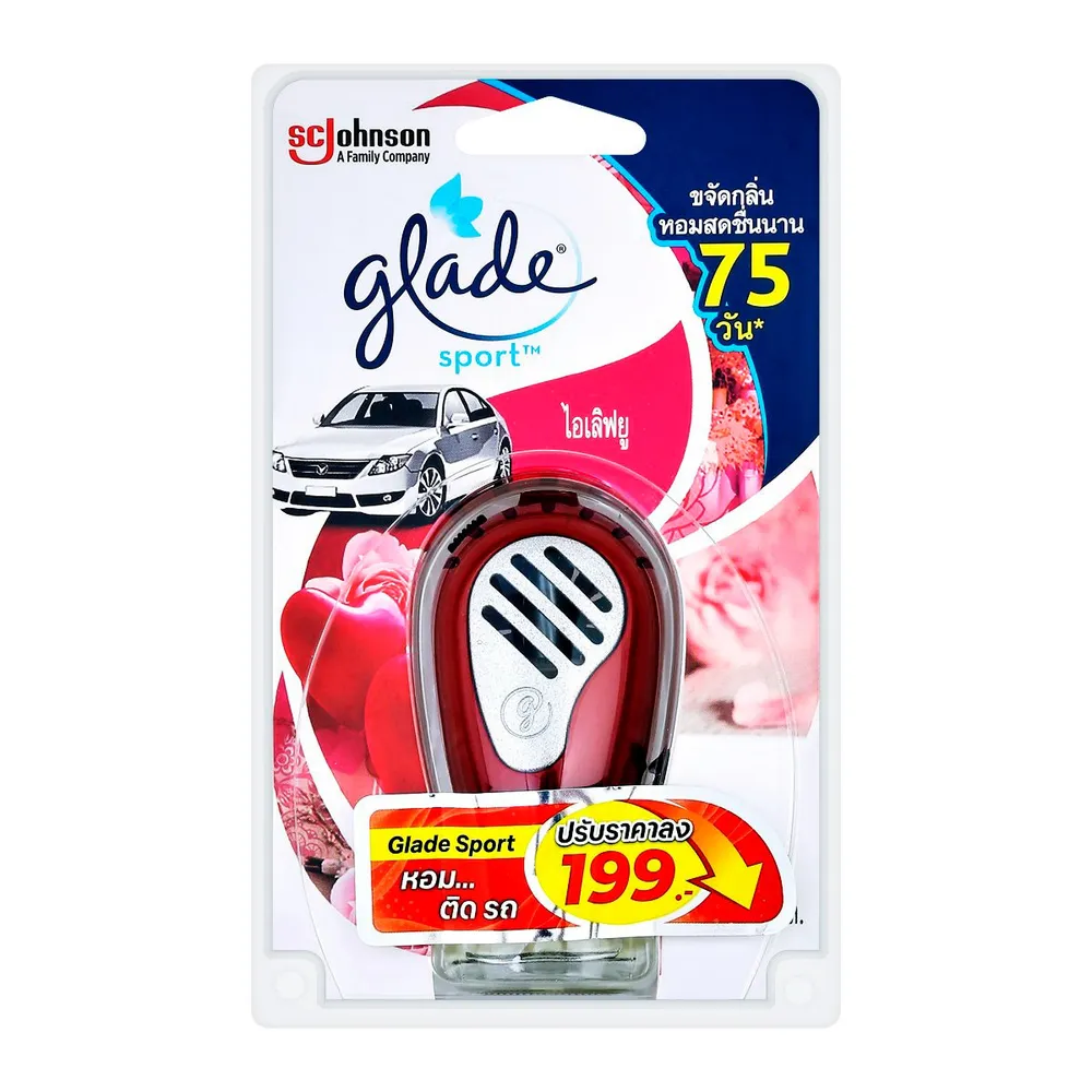 GLADE SPORT ผลิตภัณฑ์ปรับอากาศในรถยนต์ที่สามารถดูดซับและขจัดกลิ่นอันไม่พึงประสงค์ต่างๆ พร้อมทั้งสร้างความหอมสดชื่น ช่วยผ่อนคลาย หอมกระจายไปทั่วทั้งคันรถ ให้ทุกการเดินทางของคุณ มีความหอมสดชื่น มีความสุขไปทั้งวัน<br />