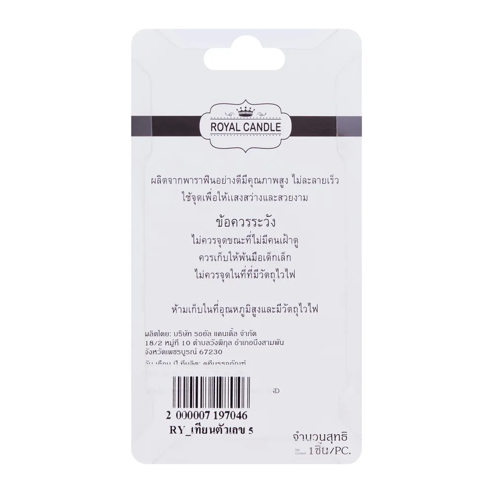 - รอยัล แคนเดิ้ล เทียนตัวเลข 5<br />