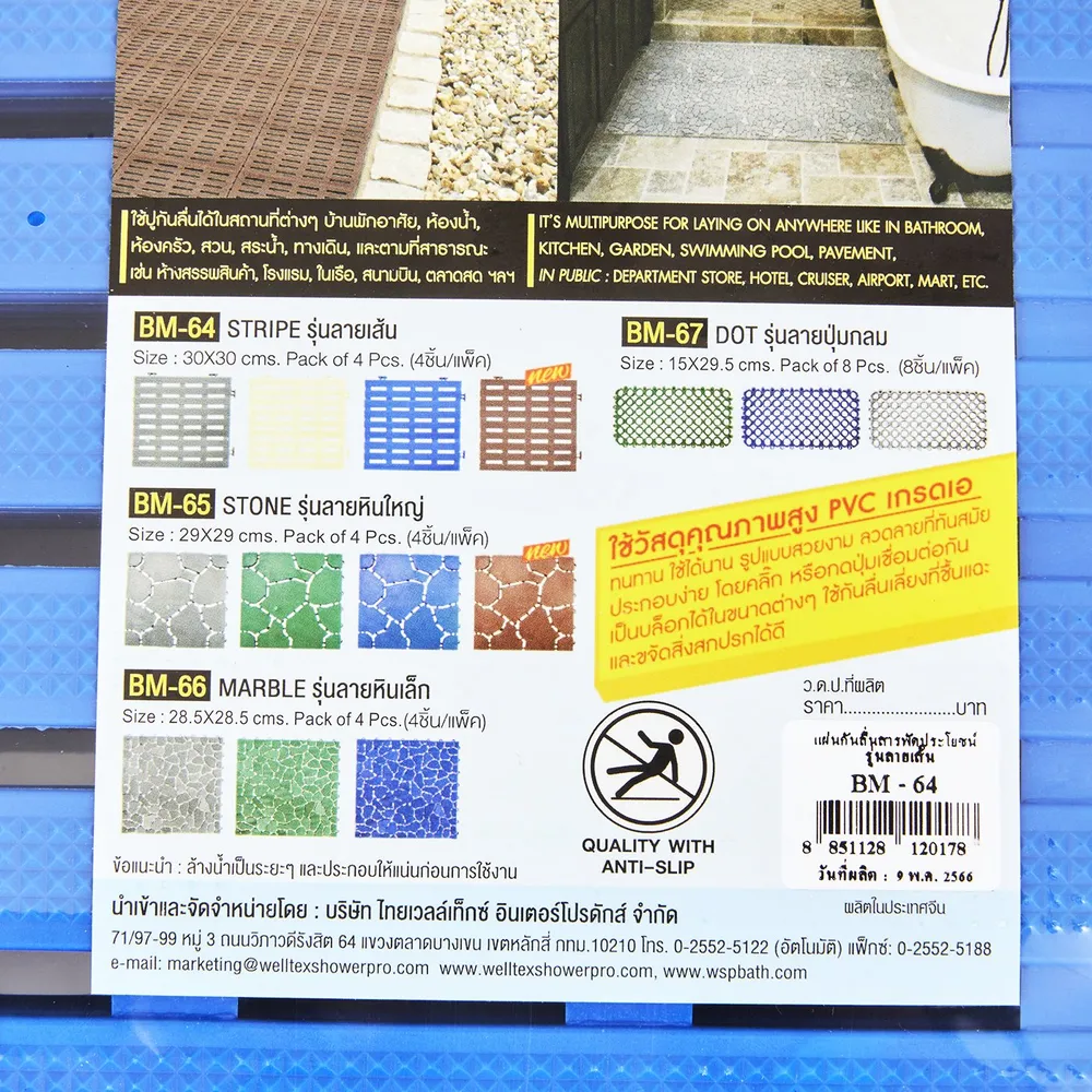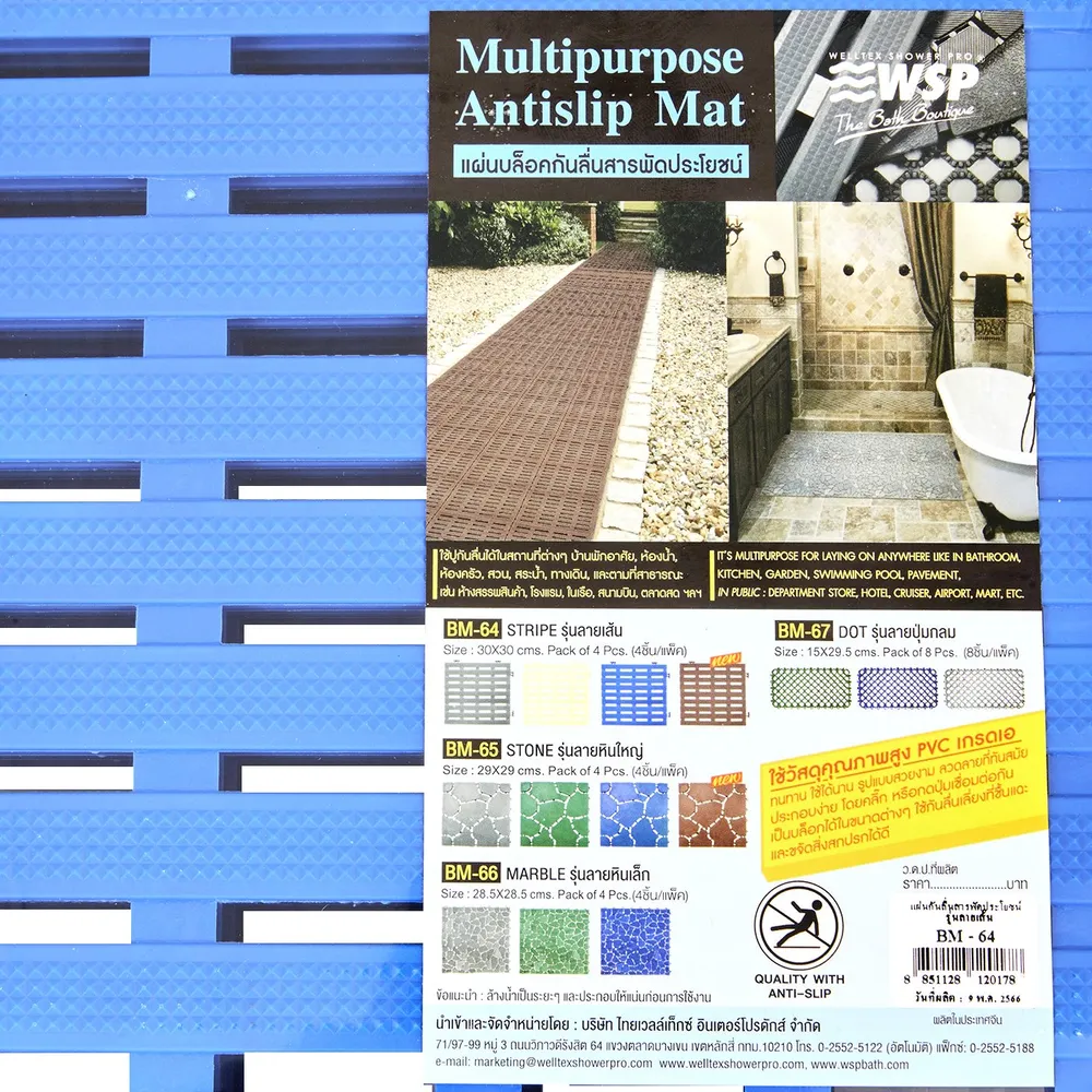 <p>ดับบลิวเอสพี แผ่นกันลื่นสารพัดประโยชน์ ลายเส้น รุ่น BM-64 ขนาด 30x30 ซม.<br />