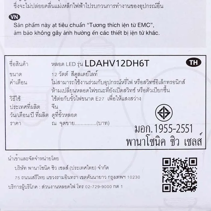 พานาโซนิค หลอดไฟ LED แสงสีขาว ขนาด 12 วัตต์