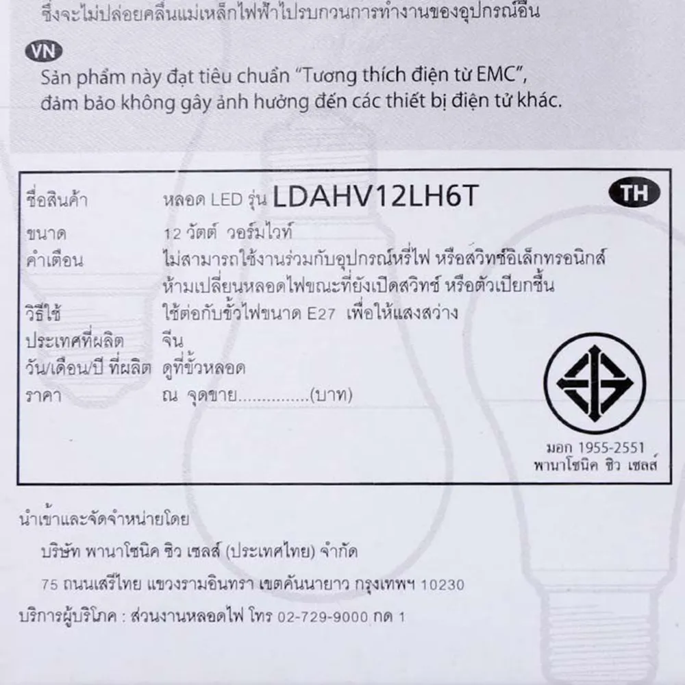 พานาโซนิค หลอด LED ขนาด 12 วัตต์ แสงสีเหลือง