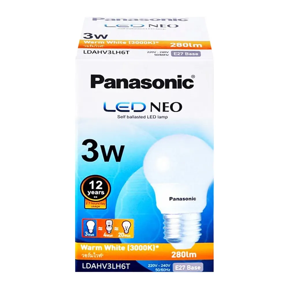 - พานาโซนิค หลอดไฟ แอลอีดี ขนาด 3 วัตต์ แสงวอร์มไวท์<br />