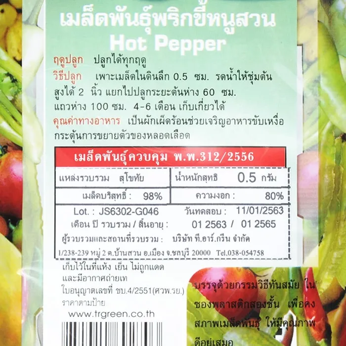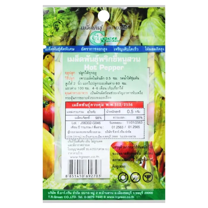 กรีนการ์เด้น เมล็ดพันธุ์พริกขี้หนูสวน ขนาดบรรจุ 0.5 ก.