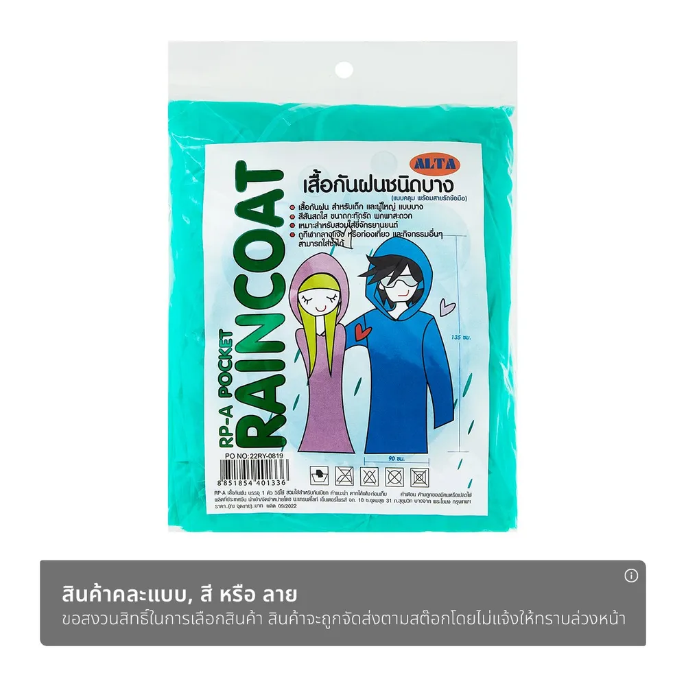 แกรนไลท์ เสื้อกันฝน แบบพกพา (สินค้าคละสี ไม่สามารถเลือกได้)