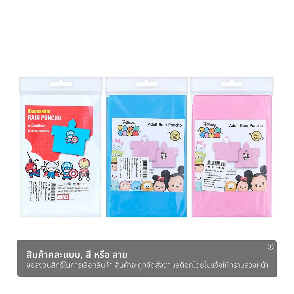 วินเทจ เสื้อกันฝนใช้แล้วทิ้ง PE ลิขสิทธิ์ Disney Tsum Tsum ฟรีไซส์ คละแบบ