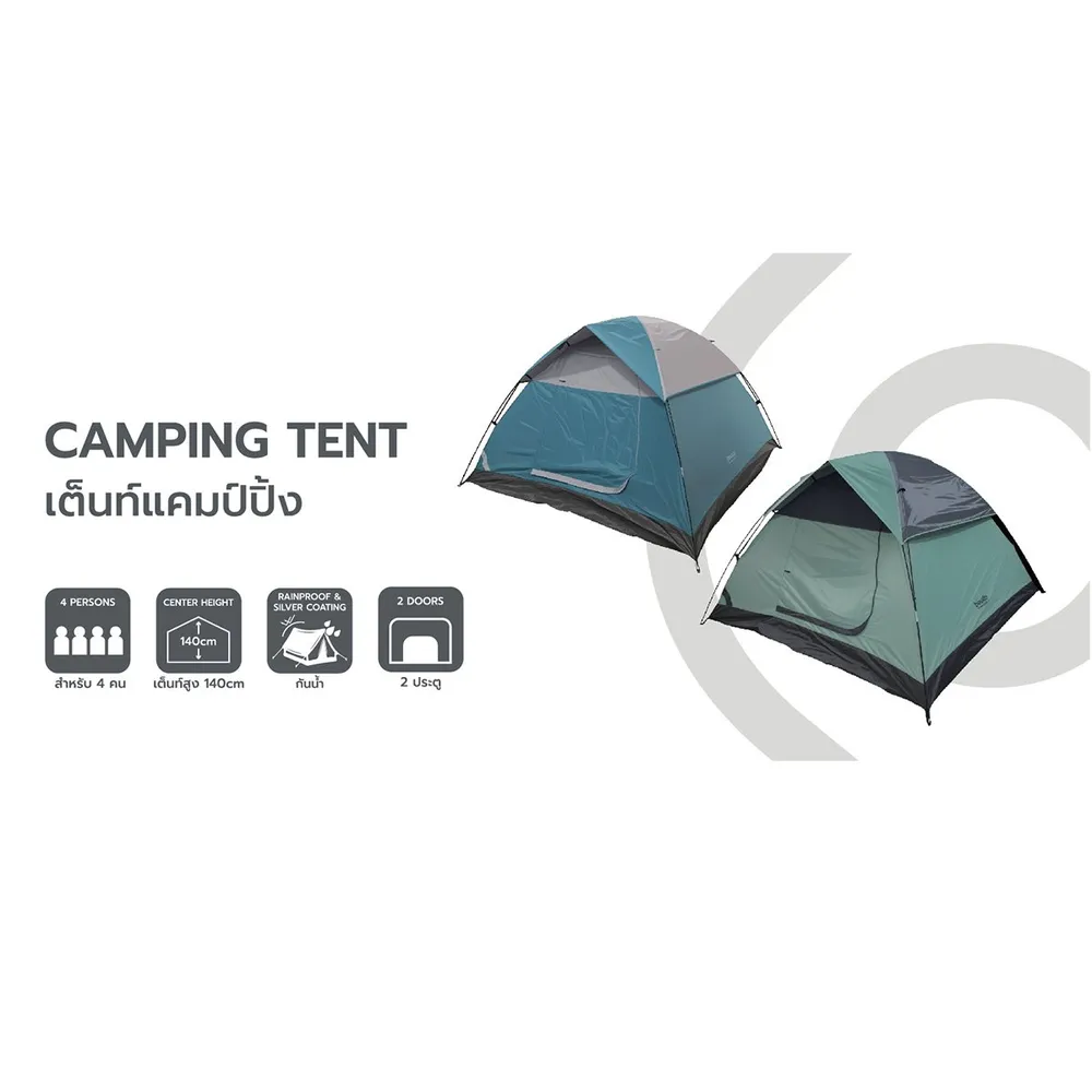 เบสิโค เต็นท์แคมปิ้ง 4 คน ตรา ที่มาพร้อมดีไซน์สวยงามและทันสมัย ผลิตจากวัสดุที่มีคุณภาพ พร้อมถุงจัดเก็บเต็นท์ พกพาสะดวก<br />