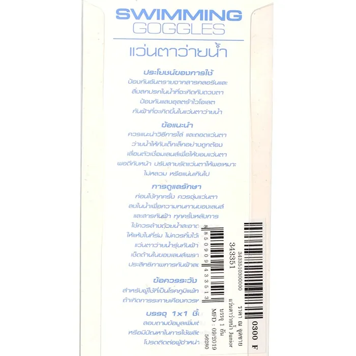 แกรนด์สปอร์ตแว่นตาว่ายน้ำสำหรับเด็ก แว่นตาว่ายน้ำคุณภาพดีที่ผ่านกระบวนการผลิตที่ได้มาตรฐานมีประสิทธิภาพในการป้องกันดวงตาจากคลอรีน และสิ่งสกปรกในน้ำที่จะเข้ามาสัมผัสกับดวงตา พร้อมยังป้องกันแสงอัลตราไวโอเลต กันฝ้าที่จะเกิดขึ้นในแว่นตาให้ภาพใต้น้ำชัดเจนอีกด้วย<br />