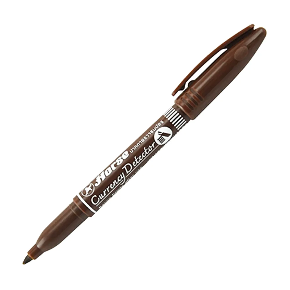 <p>ตราม้า ปากกาตรวจสอบธนบัตร<br /><br />มาเติมเต็มความสนุกและสีสันให้กับชีวิตการเรียนและการทำงานของคุณ ผ่านอุปกรณ์เครื่องเขียน และอุปกรณ์สำนักงานได้ที่บิ๊กซี<br /><br />- ใช้สำหรับตรวจสอบธนบัตร<br />- เพียงขีดปากกาลงบนธนบัตร ถ้าปรากฏเป็นสีเหลืองอ่อน ๆ แสดงว่าเป็นธนบัตรจริง แต่ถ้าเส้นที่ขีดเปลี่ยนเป็นสีน้ำตาล หรือเป็นสีดำ แสดงว่าเป็นธนบัตรปลอม<br /><br /><span style="color: #ff0000;">*บริษัทฯ ขอสงวนสิทธิ์ในการปรับเปลี่ยนราคาจำหน่ายและโปรโมชั่น รวมถึงแพ็คเกจและปริมาณสินค้าจากผู้ผลิตได้ตามความเหมาะสม โดยไม่จำเป็นต้องแจ้งให้ทราบล่วงหน้า</span><br /><br />*สีของสินค้าอาจมีความแตกต่าง ขึ้นอยู่กับการตั้งค่าของแต่ละหน้าจอ และภาพประกอบใช้เพื่อการโฆษณาเท่านั้น</p>