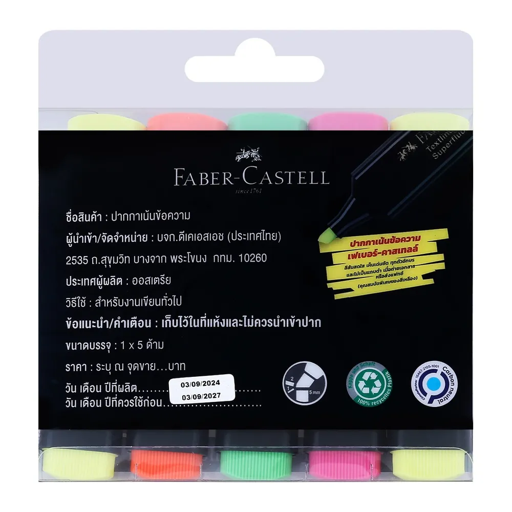 - เฟเบอร์ คาสเทลล์ ปากกาเน้นข้อความ ชนิดหัวตัด<br />