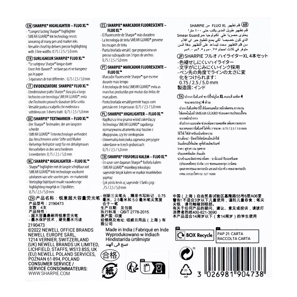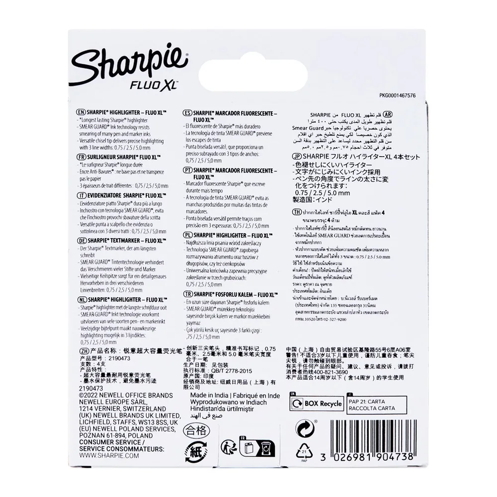 ชาร์ปี้ ปากกาเน้นข้อความ Fluo XL แพ็ค 4 แท่ง