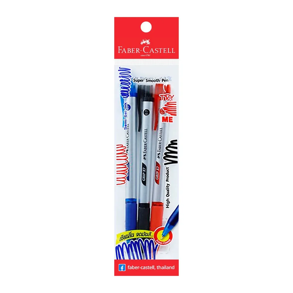 เฟเบอร์ คาสเทลล์ ปากกาลูกลื่น รุ่น GRIP X7 ขนาด 0.7 มม. คละสี แพ็ค 3