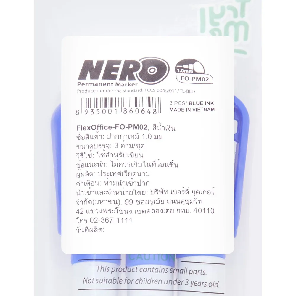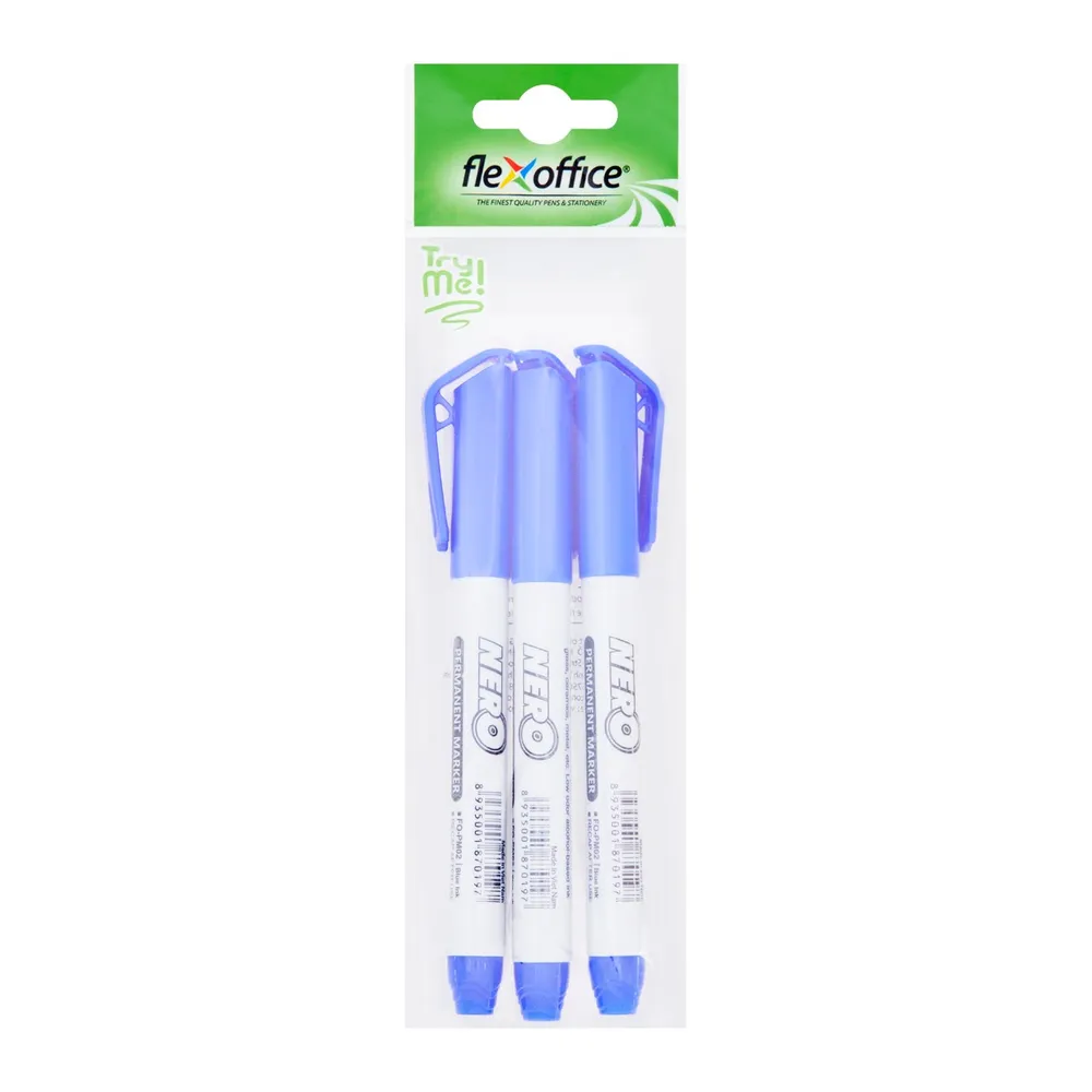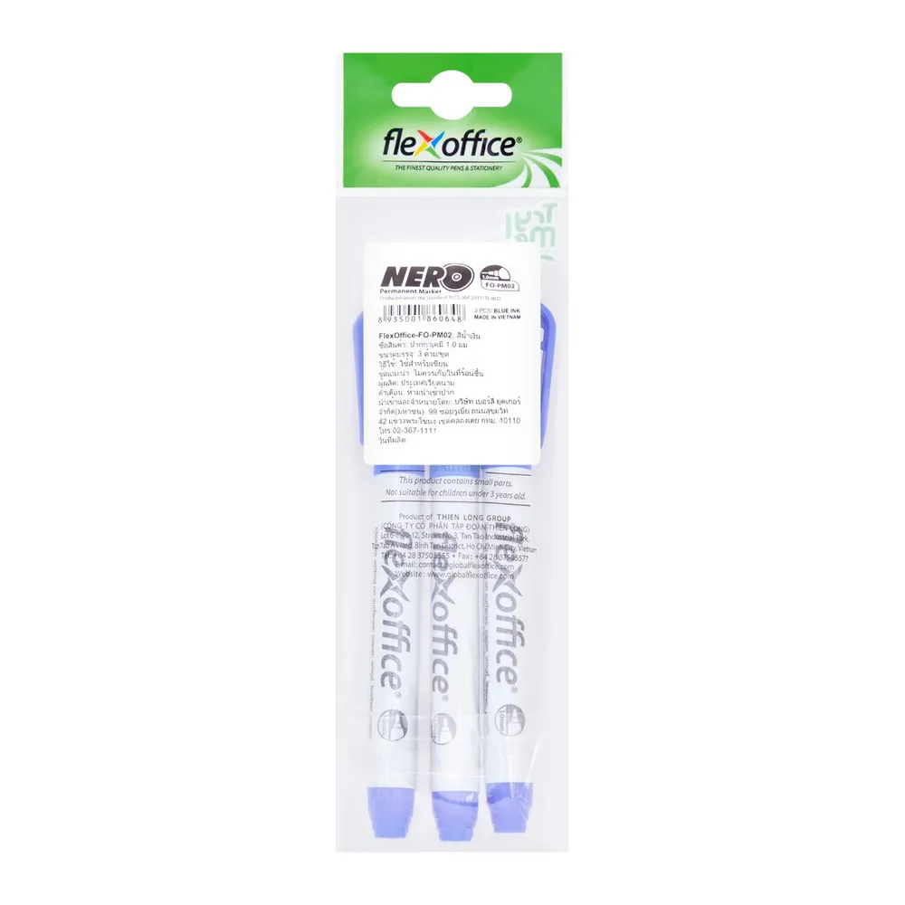 เฟล็กซ์ ออฟฟิศ ปากกาเคมี รุ่น FO-PM02 ขนาด 1.0 มม. สีน้ำเงิน แพ็ค 3