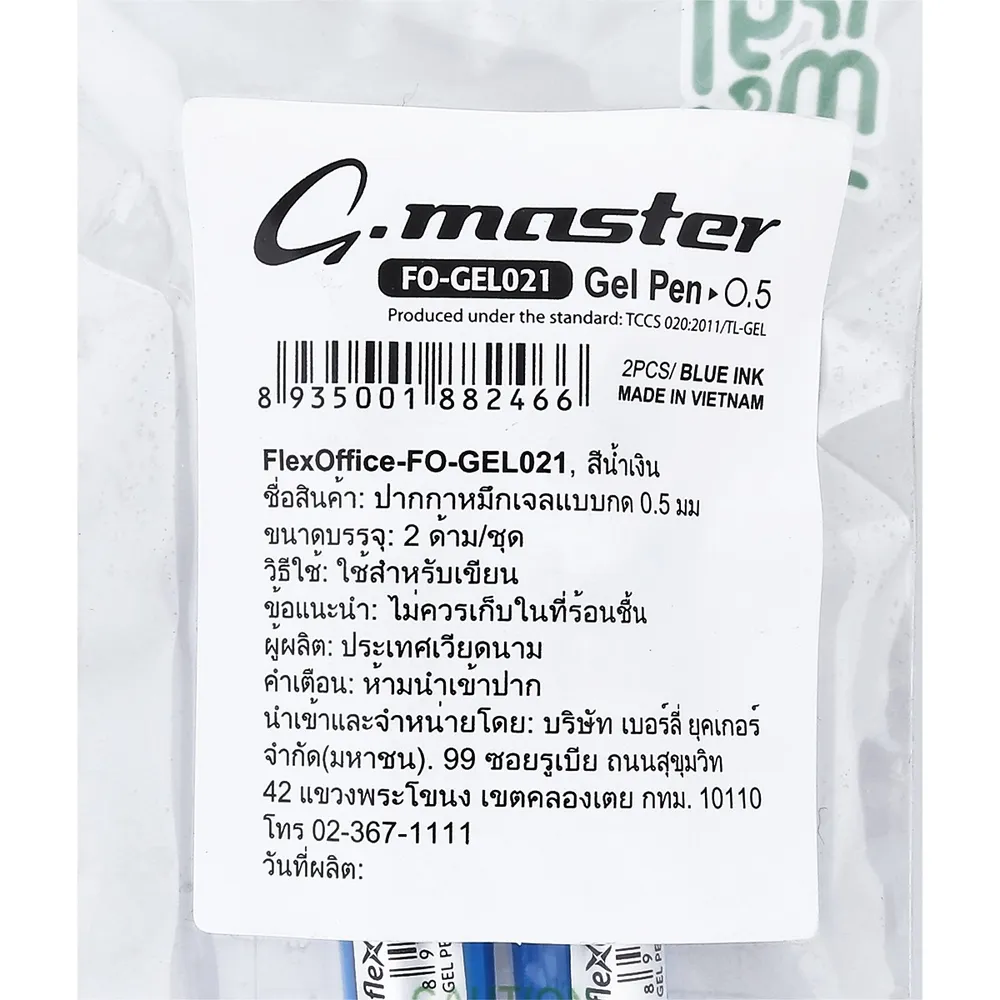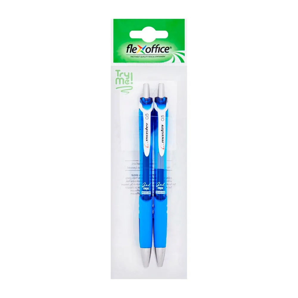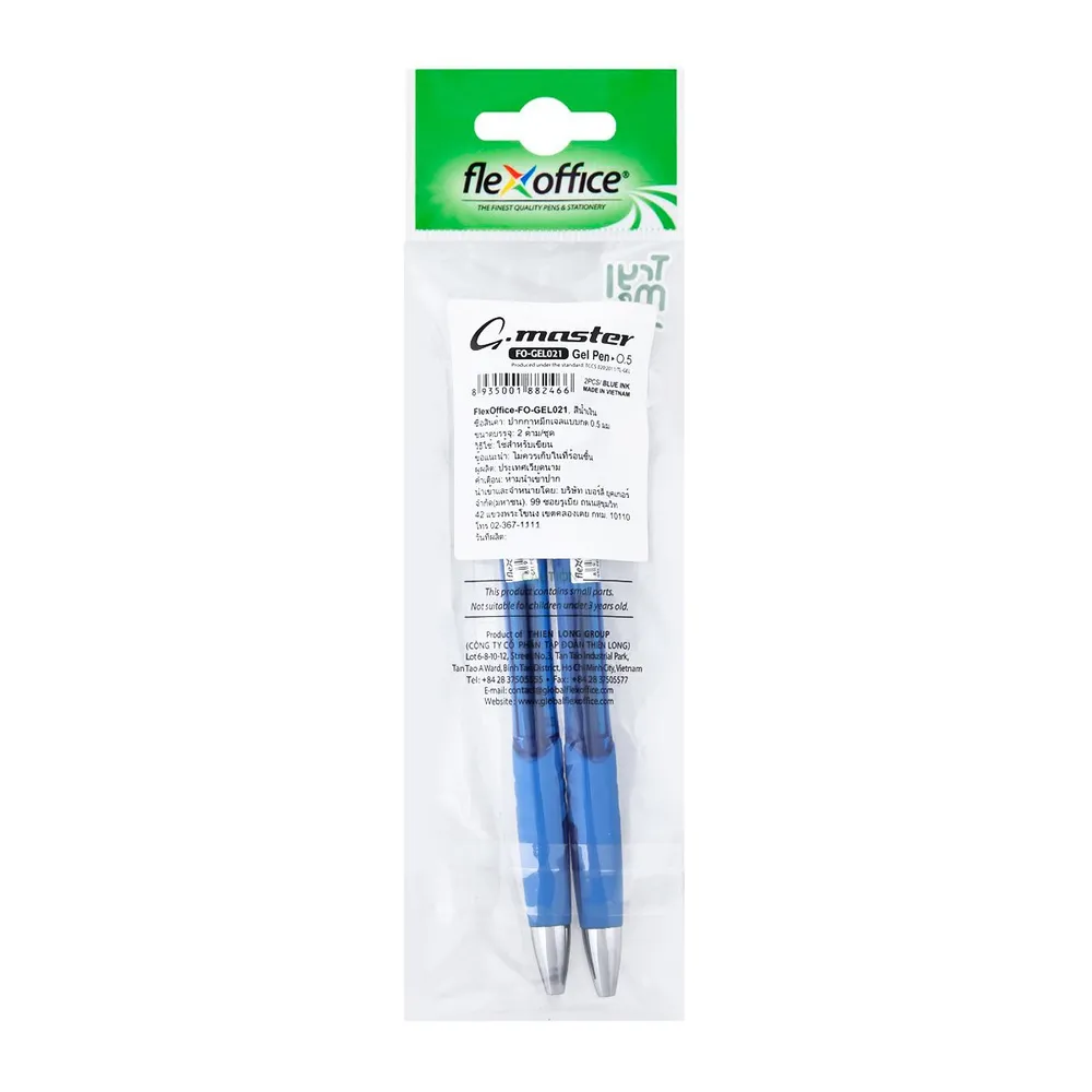 เฟล็กซ์ ออฟฟิศ ปากกาหมึกเจลแบบกด รุ่น F0-GEL021 ขนาด 0.5 มม. สีน้ำเงิน แพ็ค 2