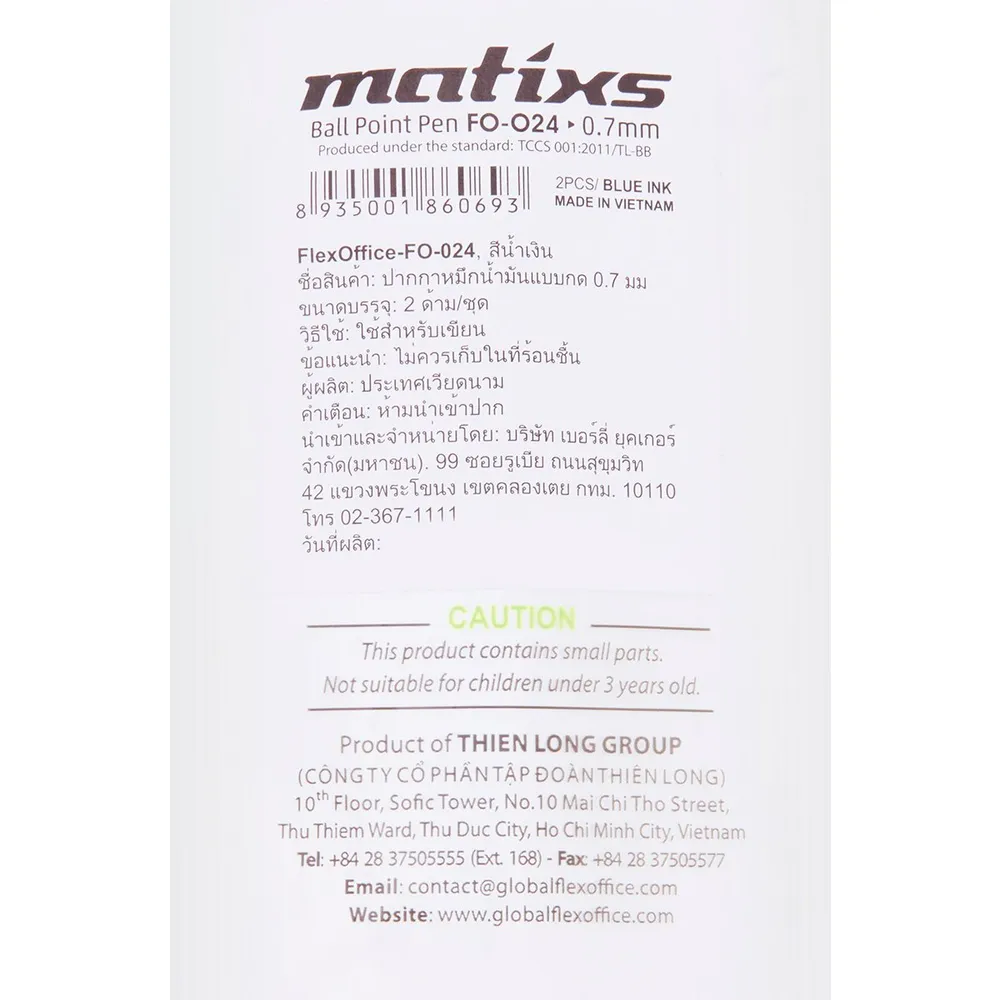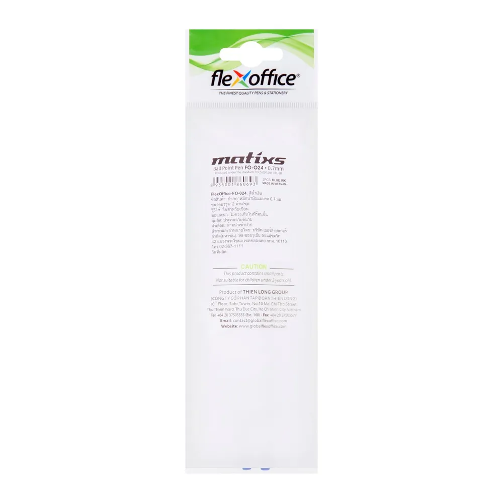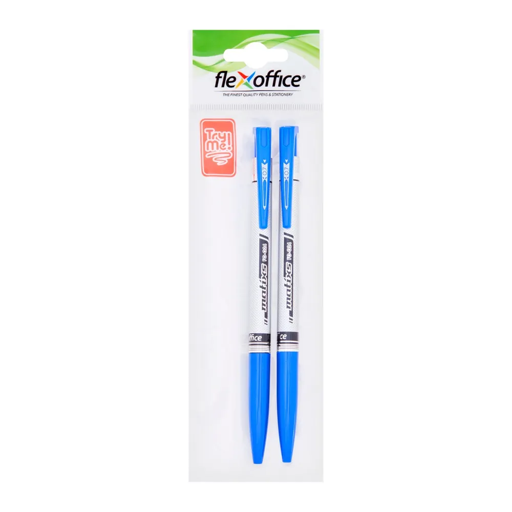 เฟล็กซ์ ออฟฟิศ ปากกาหมึกน้ำมันแบบกด รุ่น FO-024 ขนาด 0.7 มม. สีน้ำเงิน แพ็ค 2