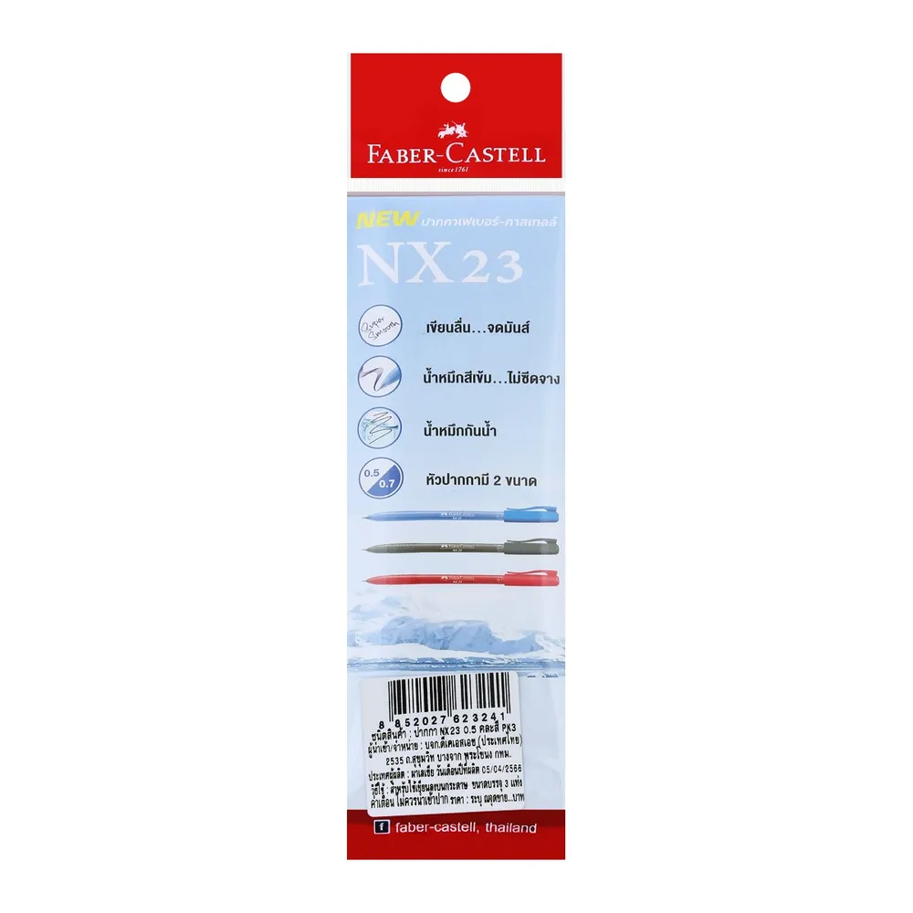 เฟเบอร์ คาสเทลล์ ปากกา รุ่น NX23 ขนาด 0.5 มม. แพ็ค 3 คละสี