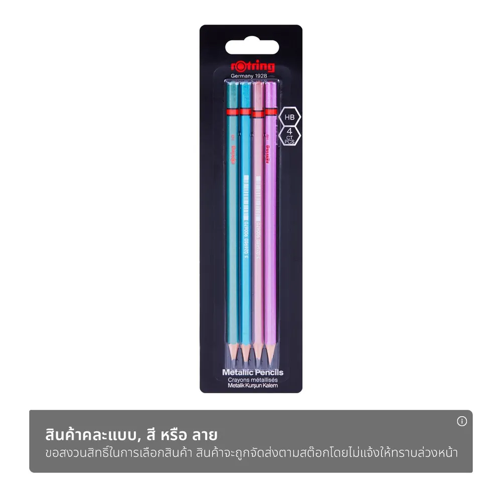 <p>รอตริง ดินสอไม้เมทาลิค HB แพ็ค 4 แท่ง คละสี<br />