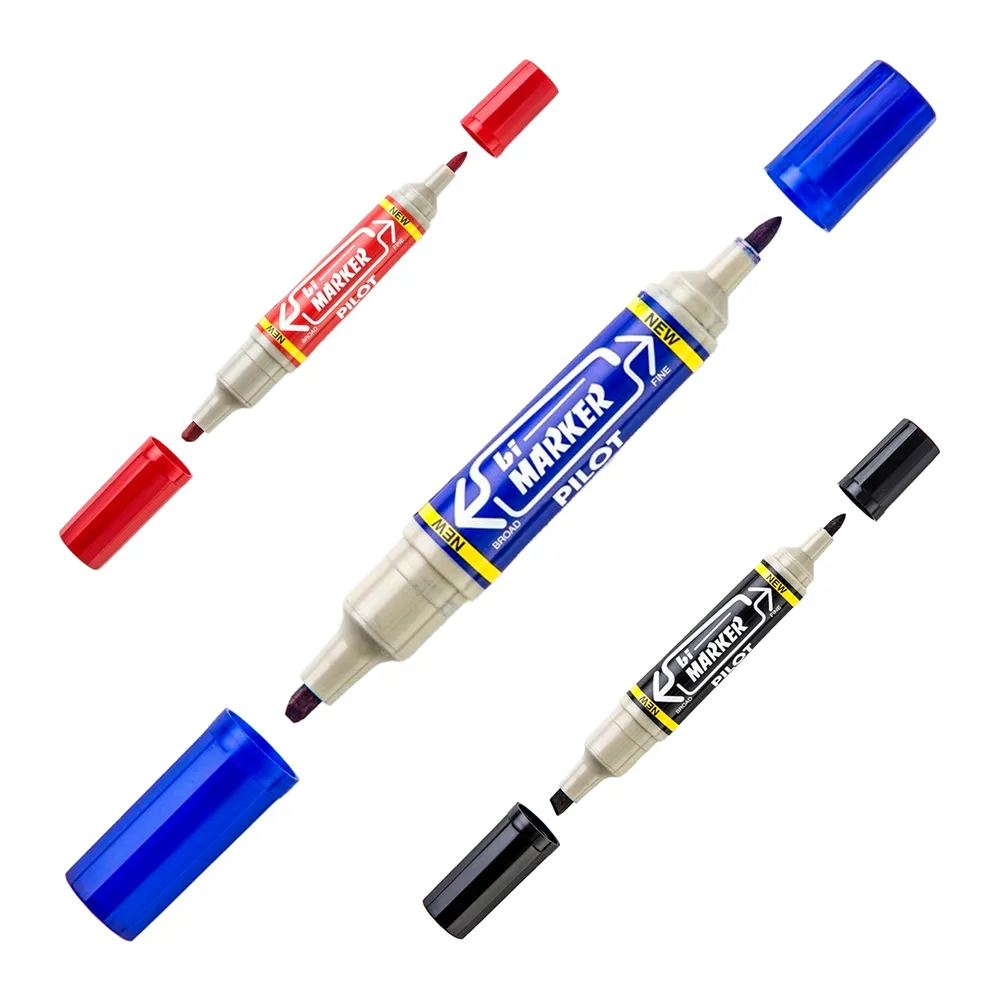 ไพลอต ปากกาเคมี 2หัว รุ่น NEW BI-MR (MC3) แพ็ค 3 คละสี