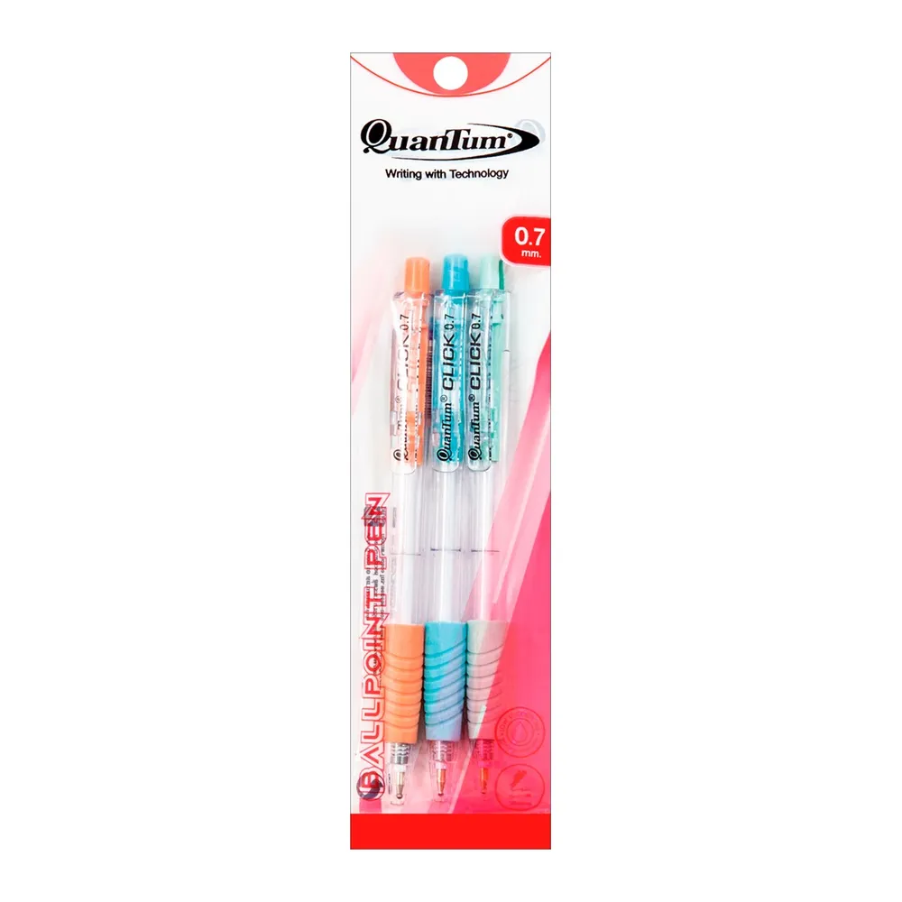 ควอนตั้ม ปากกาลูกลื่น รุ่น 527 คลิก 0.7 มม. หมึกน้ำเงิน แพ็ค 3 คละสี
