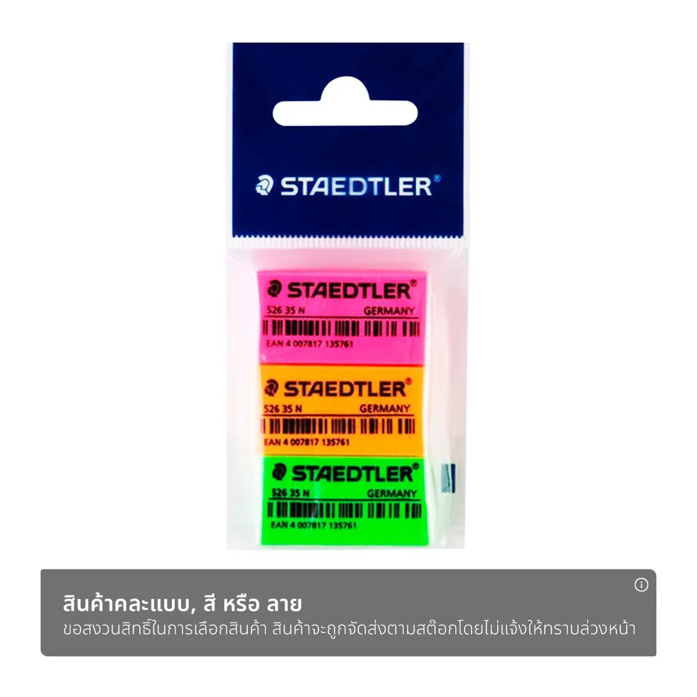 สเต็ดเล่อร์ ยางลบดินสอ รุ่นสีนีออน แพ็ค 3 ก้อน (สินค้าคละสี ไม่สามารถเลือกได้)