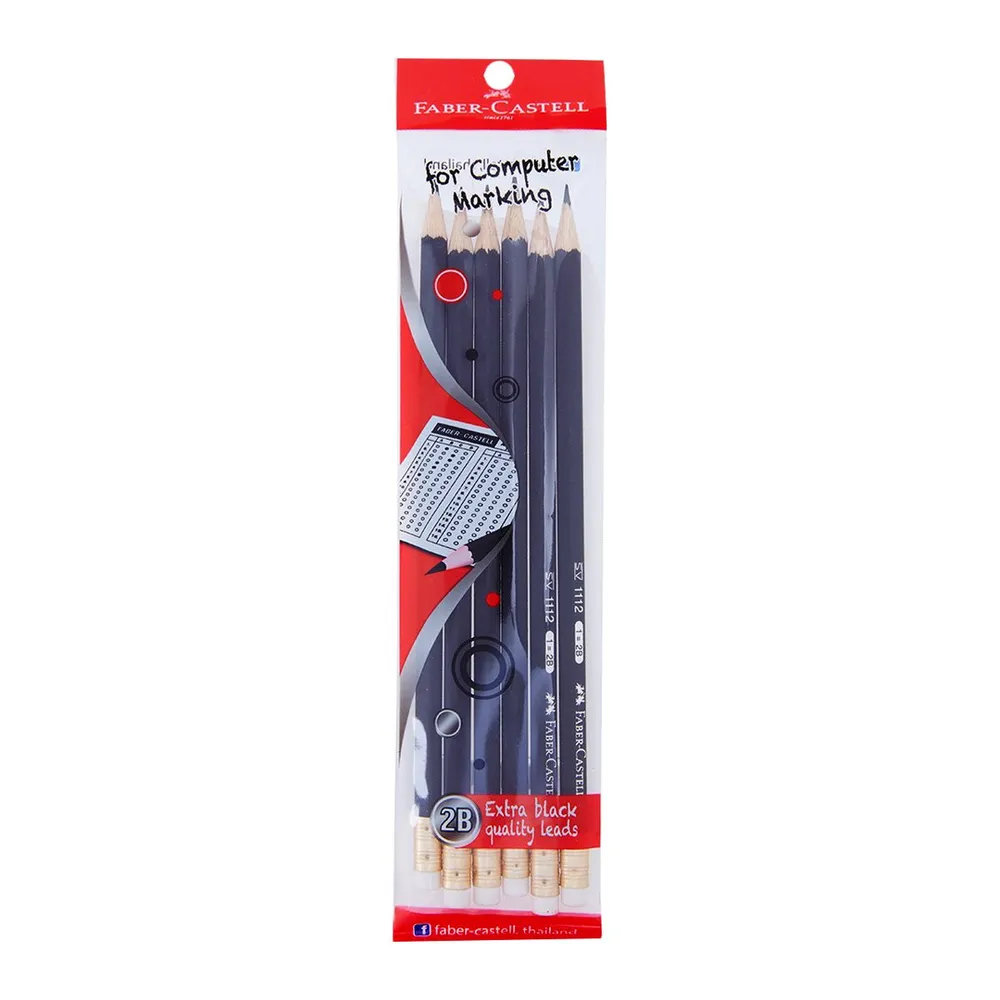 เฟเบอร์คาสเทลล์ ดินสอ 2B แพ็ค 6 เหลาง่ายพร้อมใช้งาน ดินสอดำความเข้มไส้ 2B เขียนนุ่มลื่น เหมาะสำหรับใช้ทำข้อสอบที่ตรวจด้วยระบบคอมพิวเตอร์ เหลาง่าย ไส้ไม่เปราะ ด้ามจับทรงหกเหลี่ยมจับกระชับมือ มียางลบในตัวพร้อมใช้งาน ความยาวด้าม 18.5 ซม. บรรจุ 6 ด้าม/แพ๊ค<br />