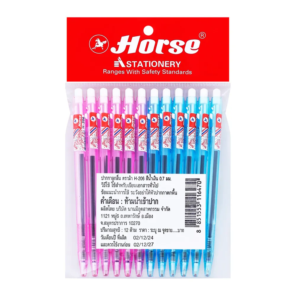 ตราม้า ปากกาลูกลื่น H-206 สีน้ำเงินขนาด 0.7 มม. แพ็ค 12 ด้าม