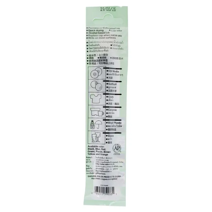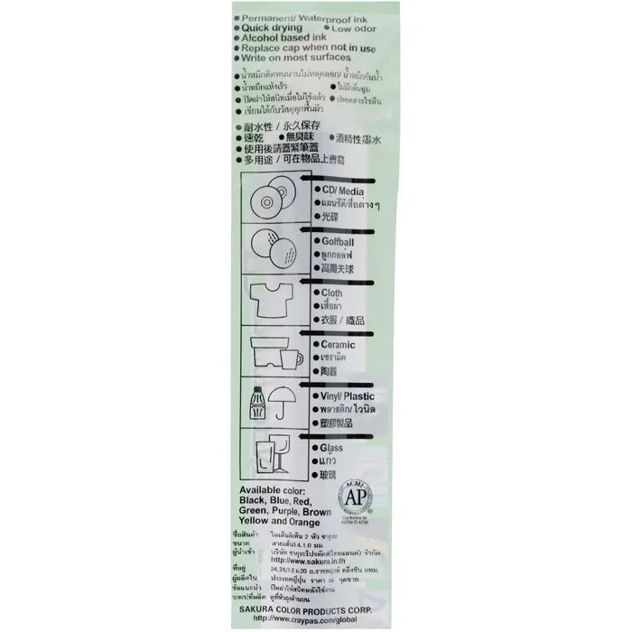 <p>ซากุระ ไอเด็นติเพ็น 2 หัว รุ่น XYKT-P-49<br /><br />ซากุระ ไอเด็นติเพ็น 2 หัว รุ่น XYKT-P-49 ปากกามาร์คเกอร์ 2 หัวชนิดพิเศษ หมึกสีดำ ที่สามารถเขียนได้ดีบนวัสดุพิเศษต่างๆ ทั้งผ้า พลาสติก เหล็ก เซรามิค ไม้ หนัง หรือแก้ว เป็นต้น ด้วยลายเส้นที่เข้ม คมชัด ไม่ซีดจาง อีกทั้งยังมีคุณสมบัติกันน้ำ และไม่มีสารที่เป็นอันตรายต่อสุขภาพ หรือกลิ่นฉุนให้รำคาญใจ<br /><br />- ปากกามาร์คเกอร์ ชนิดหัวปากกา 2 ขนาดในด้ามเดียว<br />- น้ำหมึกกันน้ำ สีไม่ซีดจาง<br />- เส้นคมชัดต่อเนื่อง ไม่มีจุดบนลายเส้น<br />- ไม่มีสารที่เป็นอันตรายต่อสุขภาพ และไม่มีกลิ่นฉุน<br />- สามารถเขียนได้ดีบนวัสดุพิเศษหลากหลายประเภท<br /><br />*ภาพประกอบใช้เพื่อการโฆษณาเท่านั้น</p>