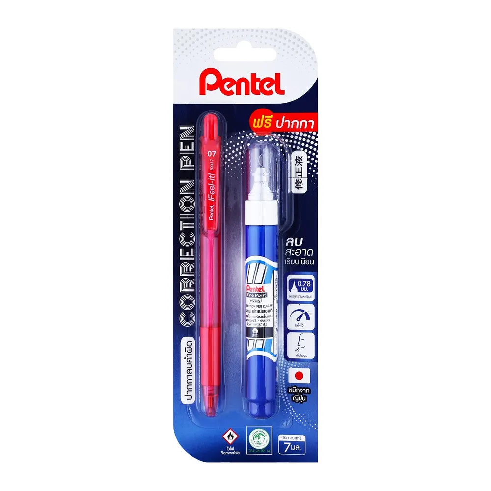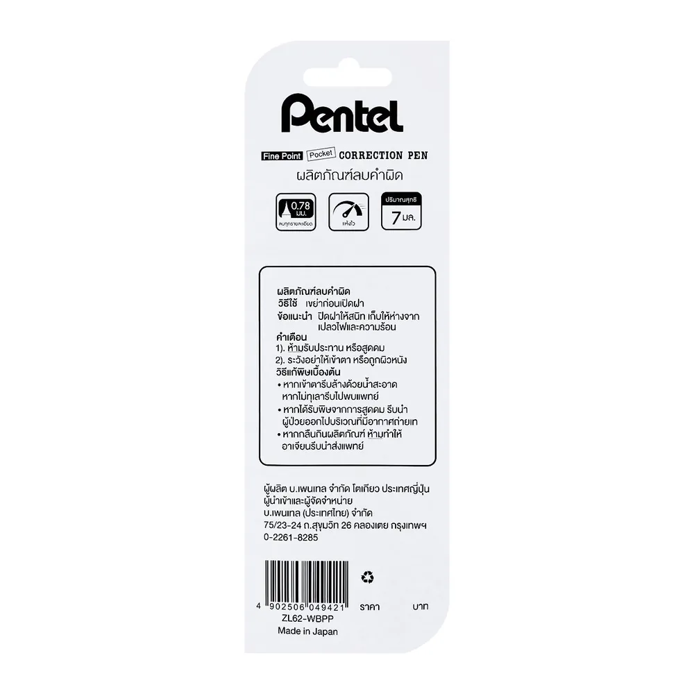 เพนเทล ปากกาลบคำผิด ชนิดหัวเหล็ก รุ่นไฟน์ พอยท์ ZL62-W ขนาด 7 มล.
