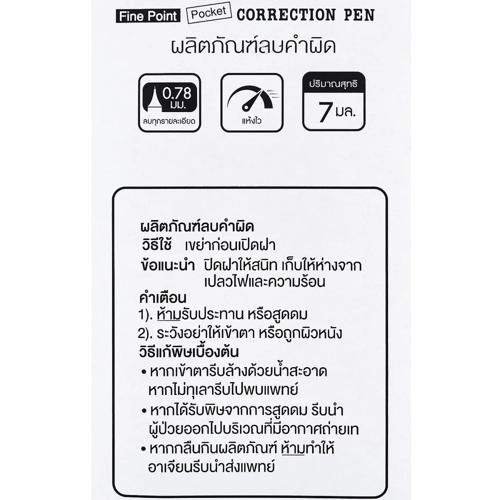 <p>- ปากกาลบคำผิด ชนิดหัวปากกา Fine Point ลบง่ายทุกจุด</p>