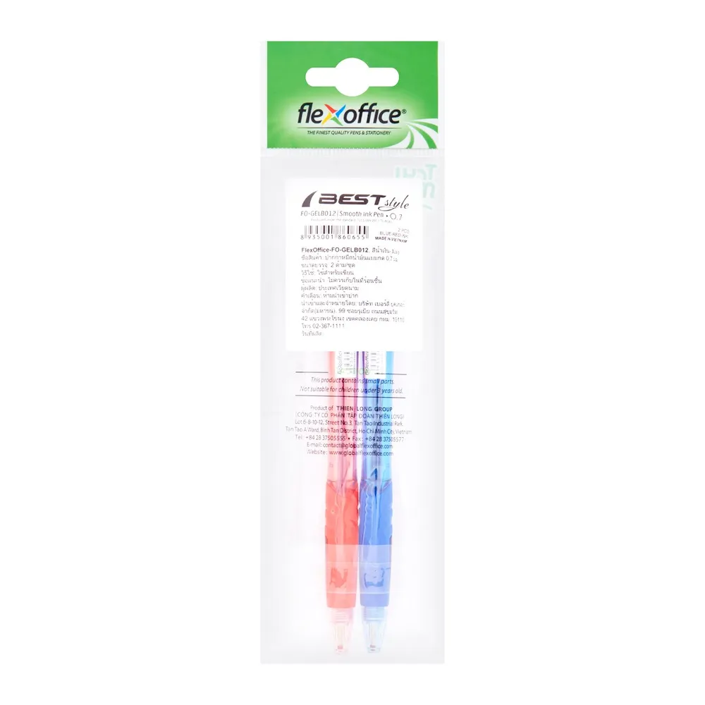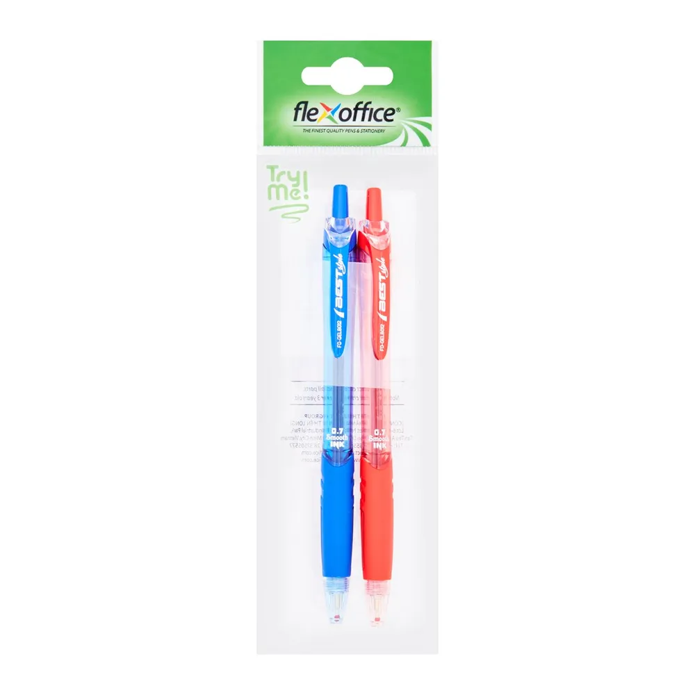 เฟล็กซ์ ออฟฟิศ ปากกาหมึกน้ำมันแบบกด รุ่น FO-GELBO12 ขนาด 0.7 มม. สีน้ำเงินและสีแดง แพ็ค 2