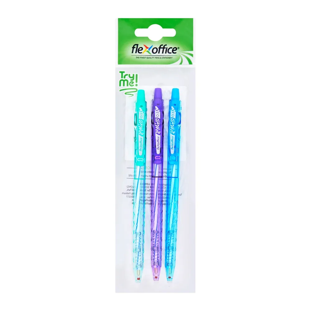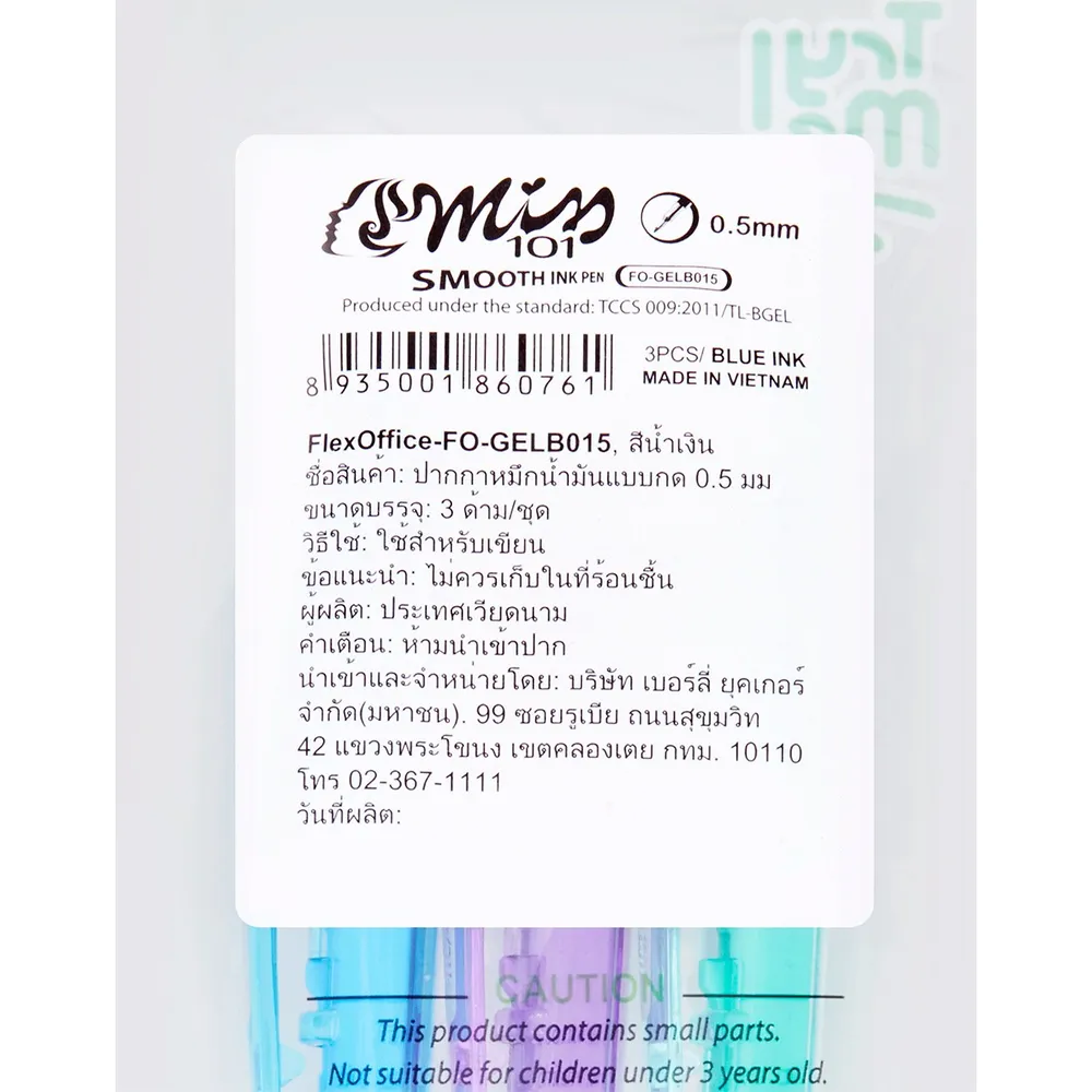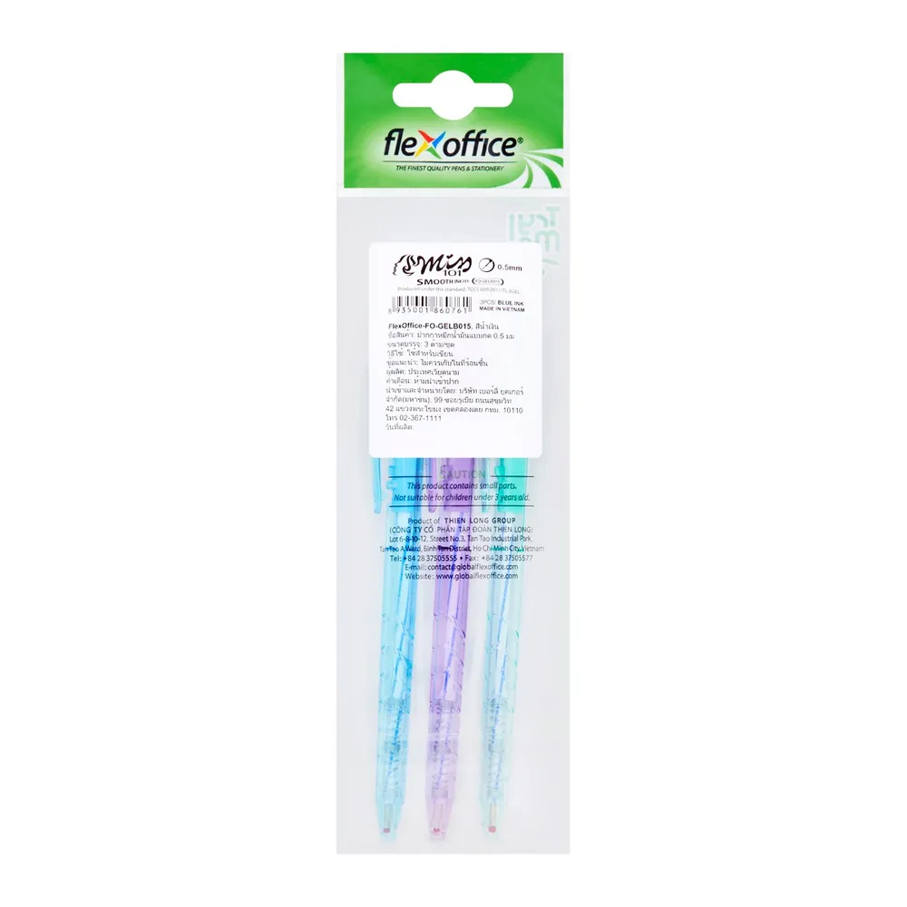 เฟล็กซ์ ออฟฟิศ ปากกาหมึกน้ำมันแบบกด รุ่น FO-GELB015 ขนาด 0.5 มม. สีน้ำเงิน แพ็ค 3