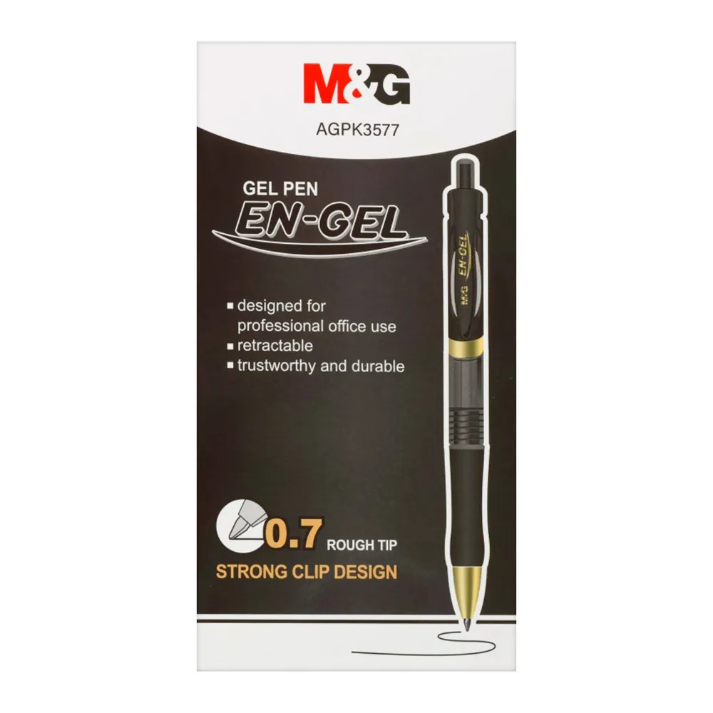 <p>เอ็มแอนด์จี ปากกาเจล 0.7 มม. รุ่น AGPK3577B<br /><br />มาเติมเต็มความสนุก สีสัน และจินตนาการให้กับชีวิตการเรียนและชีวิตวัยทำงานของคุณ ด้วยอุปกรณ์เครื่องเขียน และอุปกรณ์สำนักงานได้ที่บิ๊กซี<br /><br />- ผลิตจากวัสดุคุณภาพดี <br />- น้ำหมึกสีสด เขียนลื่น น้ำหมึกไหลสม่ำเสมอ<br />- ลายด้าม Basic ดำตัดขลิบสีทอง <br /><br /><span style="color: #ff0000;">*บริษัทฯ ขอสงวนสิทธิ์ในการปรับเปลี่ยนราคาจำหน่ายและโปรโมชั่น รวมถึงแพ็คเกจและปริมาณสินค้าจากผู้ผลิตได้ตามความเหมาะสม โดยไม่จำเป็นต้องแจ้งให้ทราบล่วงหน้า</span><br /><br />*สีของสินค้าอาจมีความแตกต่าง ขึ้นอยู่กับการตั้งค่าของแต่ละหน้าจอ และภาพประกอบใช้เพื่อการโฆษณาเท่านั้น</p>