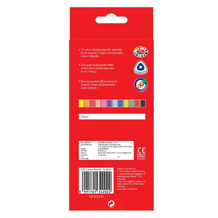 <p>เฟเบอร์ คาสเทลล์ ดินสอสีไม้ ด้ามสามเหลี่ยมยาว 12 สี <br /><br />เฟเบอร์ คาสเทลล์ ดินสอสีไม้ ด้ามสามเหลี่ยมยาว เป็นสีไม้คุณภาพดี ให้สีสด นุ่มลื่น ระบายง่าย&nbsp;รูปทรงสามเหลี่ยม จับถนัดมือ&nbsp;ระบายสีได้เรียบ และลื่น ไม่ว่าจะระบายนานแค่ไหนก็เพลิดเพลินได้ทุกครั้ง&nbsp;เหมาะกับน้องๆ หนูๆ ทุกคน<br /><br />สีไม้ ชนิดแท่งยาว<br />ตัวด้ามทรงสามเหลี่ยม จับถนัดมือ<br />ให้เนื้อสีเข้ม ไส้สีไม่หักง่าย<br />มี 12 เฉดสี<br />บรรจุ 12 แท่ง/กล่อง<br />จำนวน 1 กล่อง<br /><br />*ภาพประกอบใช้เพื่อการโฆษณาเท่านั้น</p>