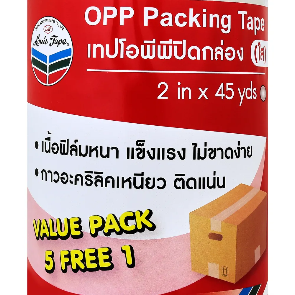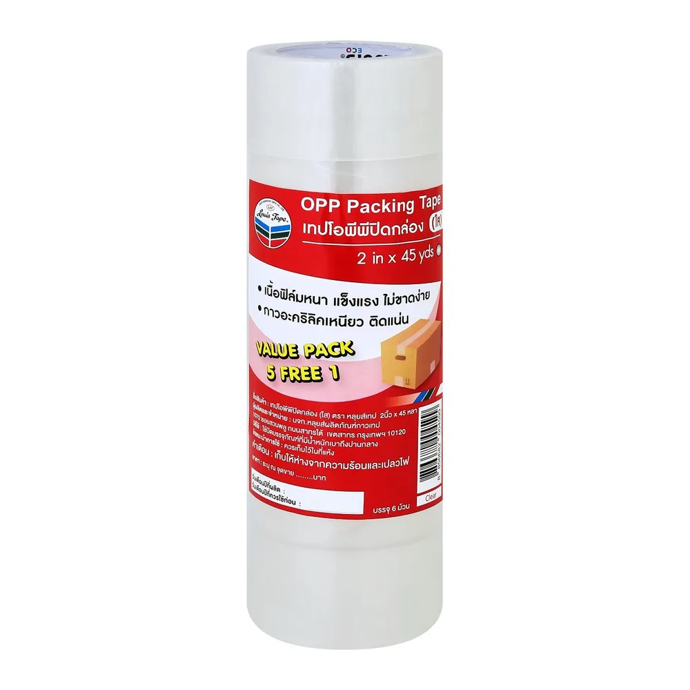 หลุยส์เทป เทปกาวใส OPP ปิดกล่อง 2 นิ้ว x 45 หลา แพ็ค 5+1